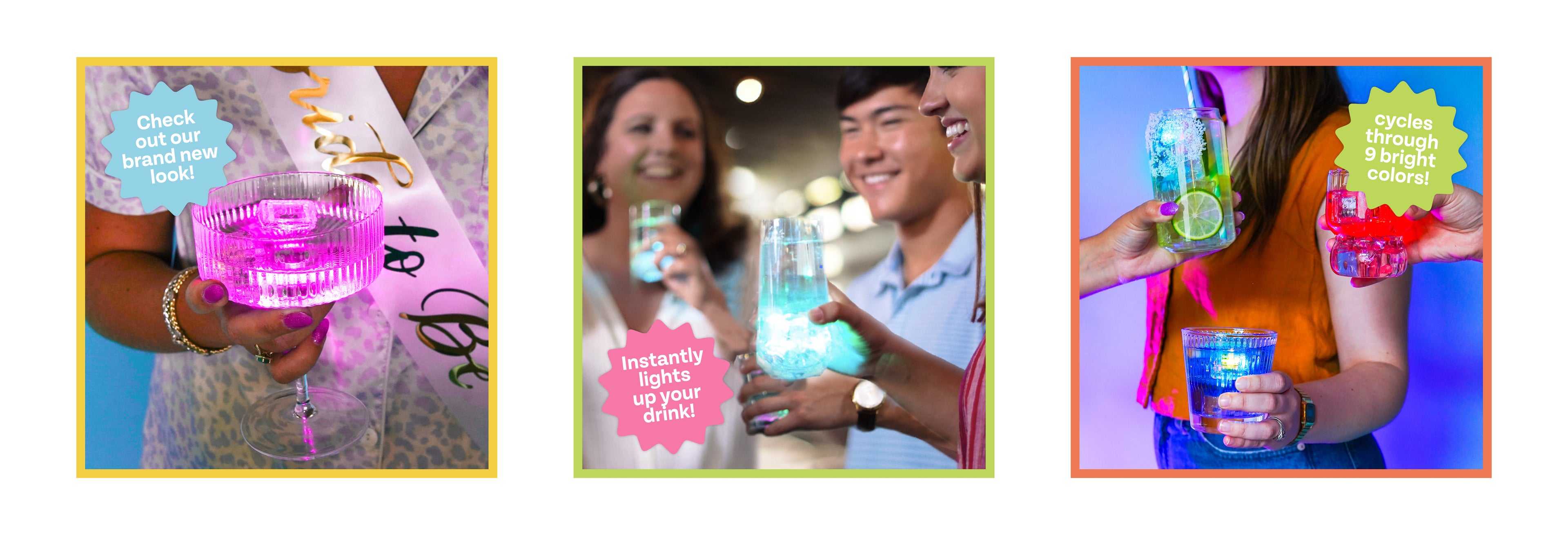 Glo Cubes® are the original, patented Light-Up Drink Cubes.